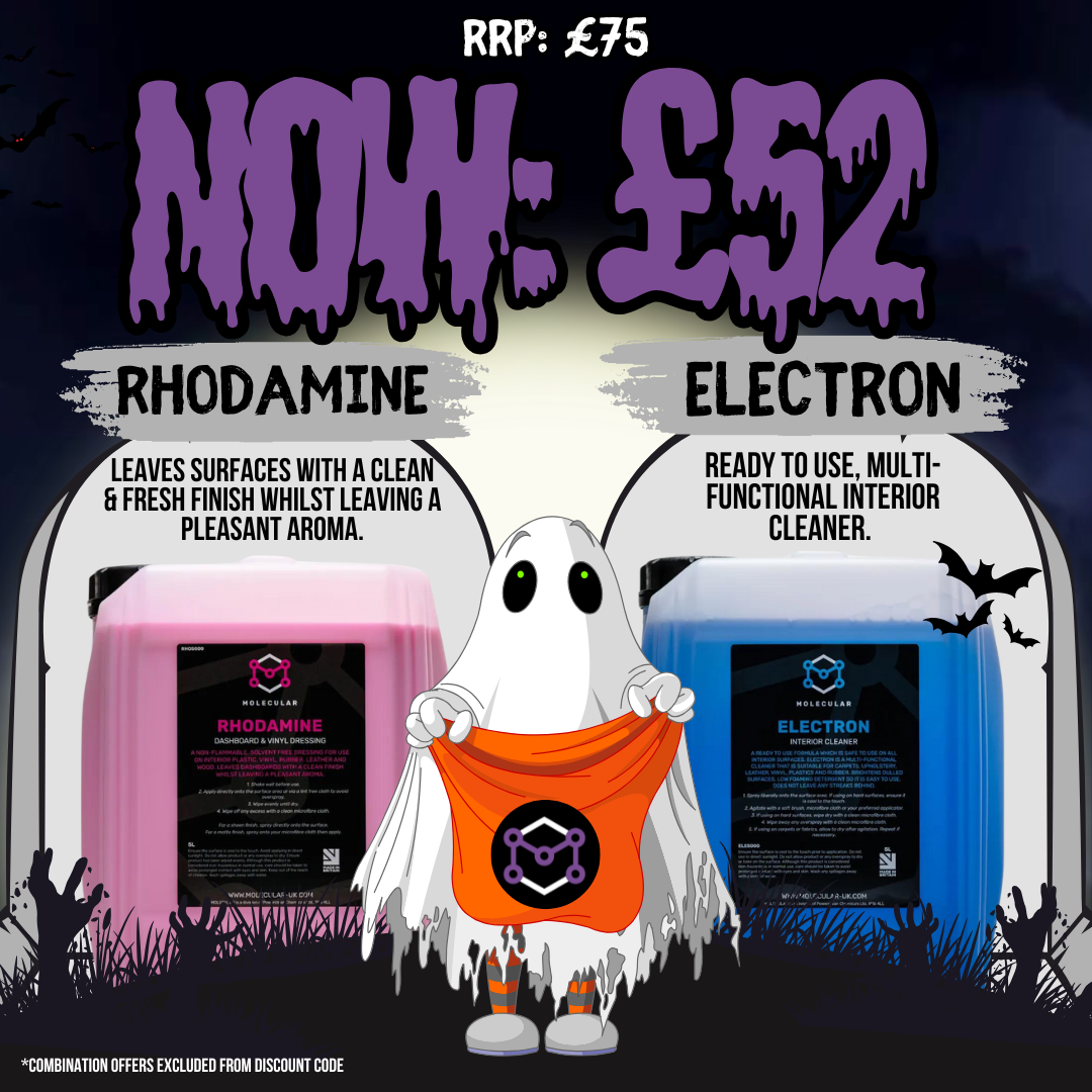 Care for your vehicles interior with our interior cleaner and dressing combo. Includes the beautifully scented RHODAMINE and the ready to use interior cleaner ELECTRON.